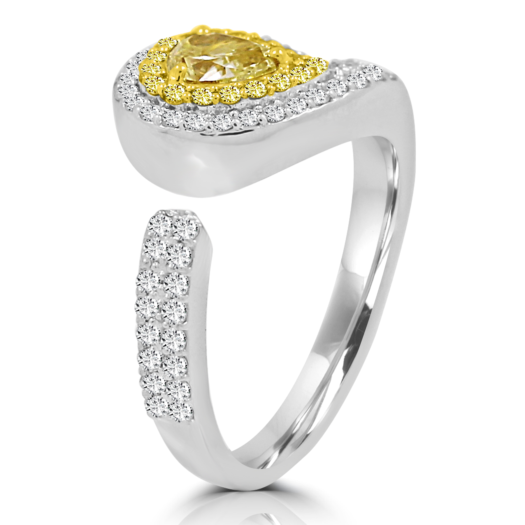 Yellow Diamond Paisley Open Ring accented with Natural Yellow and White Diamond melees set in 18k gold